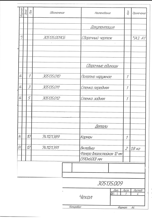 Поставка Чехла 305135.009. Согласно приложенной технической документации